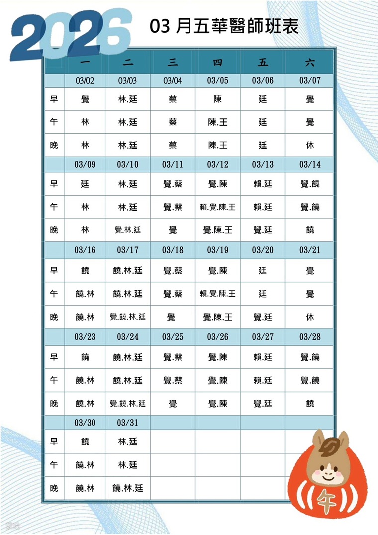 2025年10月醫師班表