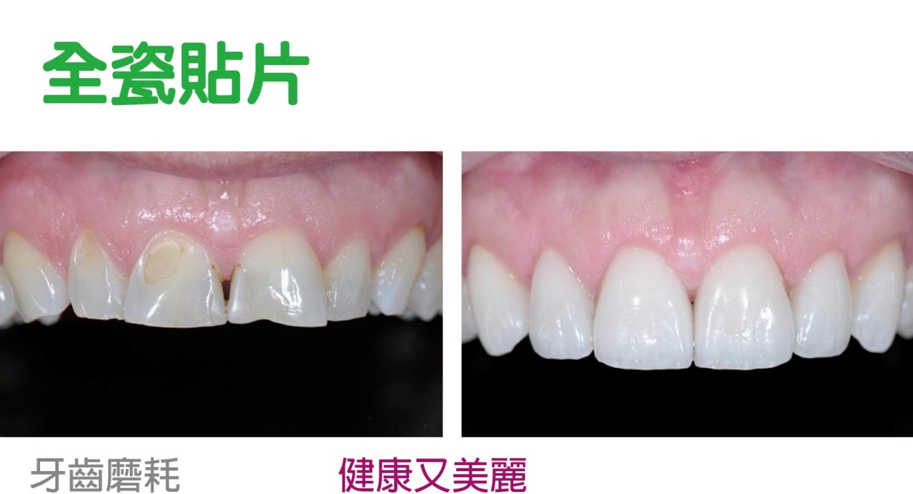 牙齒本身沒有太大的斷裂或蛀蝕,牙齒外層的牙釉質沒有過度磨耗,都有條件在表面黏著瓷牙貼片。